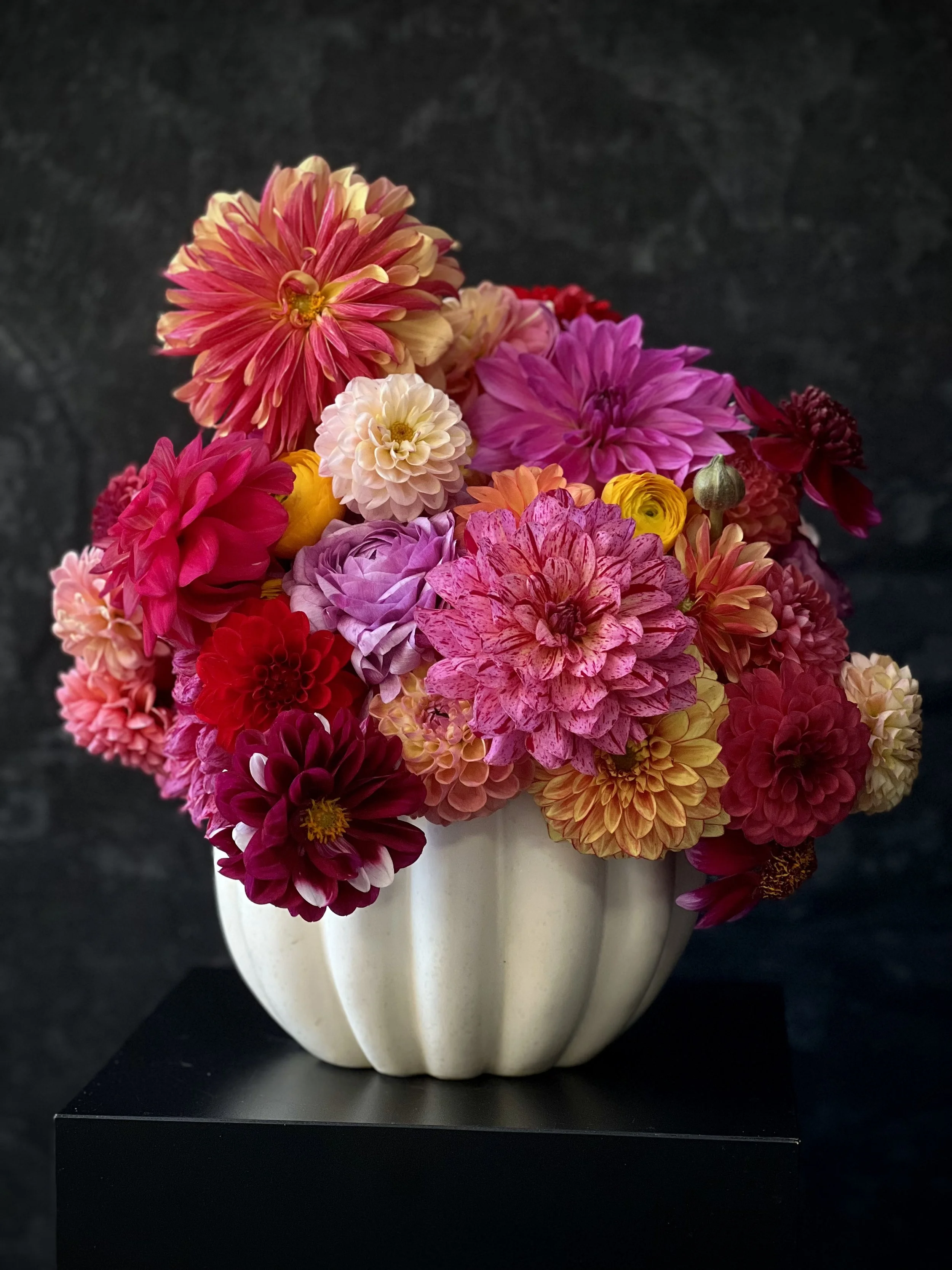 Each arrangement will be designer's choice in a curated ceramic vase. The perfect arrangement for any and all reasons. Beautiful mix of fresh cut florals will be designed for this offering based on seasonal floral availability.